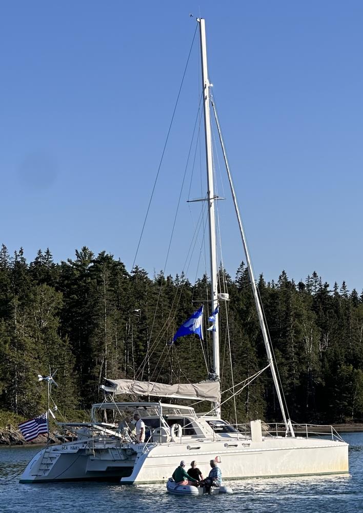 On October 30, BWSC member Fred Kern and his crew of three were taken aboard the USS Cole in high wind and seas, leaving Fred and Anne’s Catana 42S catamaran Sea Hawk II adrift.